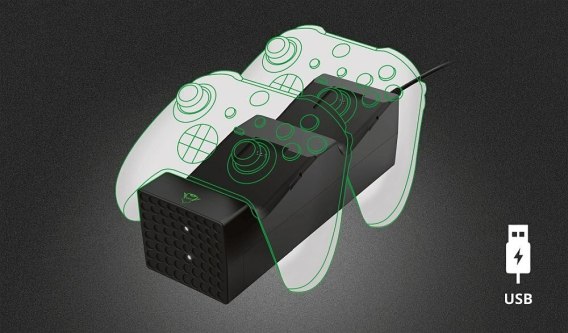 Trust GXT 250 to stacja ładująca do padów od konsoli Xbox Series X/S. Podłączana do gniazda USB stacja pozwoli ładować dwa pady jednocześnie. W zestawie są 2 pakiety akumulatorków, każdy o pojemności 1200 mAh każdy. Design stacji jest dopasowany do wyglądu konsoli Xbox Series X, będzie więc stylowym dodatkiem do Twojego stanowiska gamingowego.Wystarczy nawyk odkładania padów na miejsce po skończonej grze i będą się ładować, gdy ich nie używasz. Design stacji ładującej Trust GXT 250 sprawi, że będzie idealnym dodatkiem do konsoli Xboxa Series X. Wystarczy, że podłączysz ją kablem do twojej konsoli, a stacja zacznie działać. Możesz też podłączyć stację do ładowarki sieciowej z portem USB zupełnie jak smartfon.