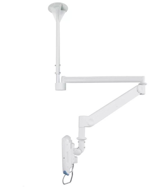 Uchwyt sufitowy Neomounts, model FPMA-HAC100, to uchwyt sufitowy z możliwością nachyłu i obrotu przeznaczony do medycznych ekranów płaskich o przekątnej do 24 cali. Ten uchwyt jest doskonałym wyborem do oszczędności miejsca, gdy montaż na ścianie lub ustawienie na podłodze nie jest opcją.